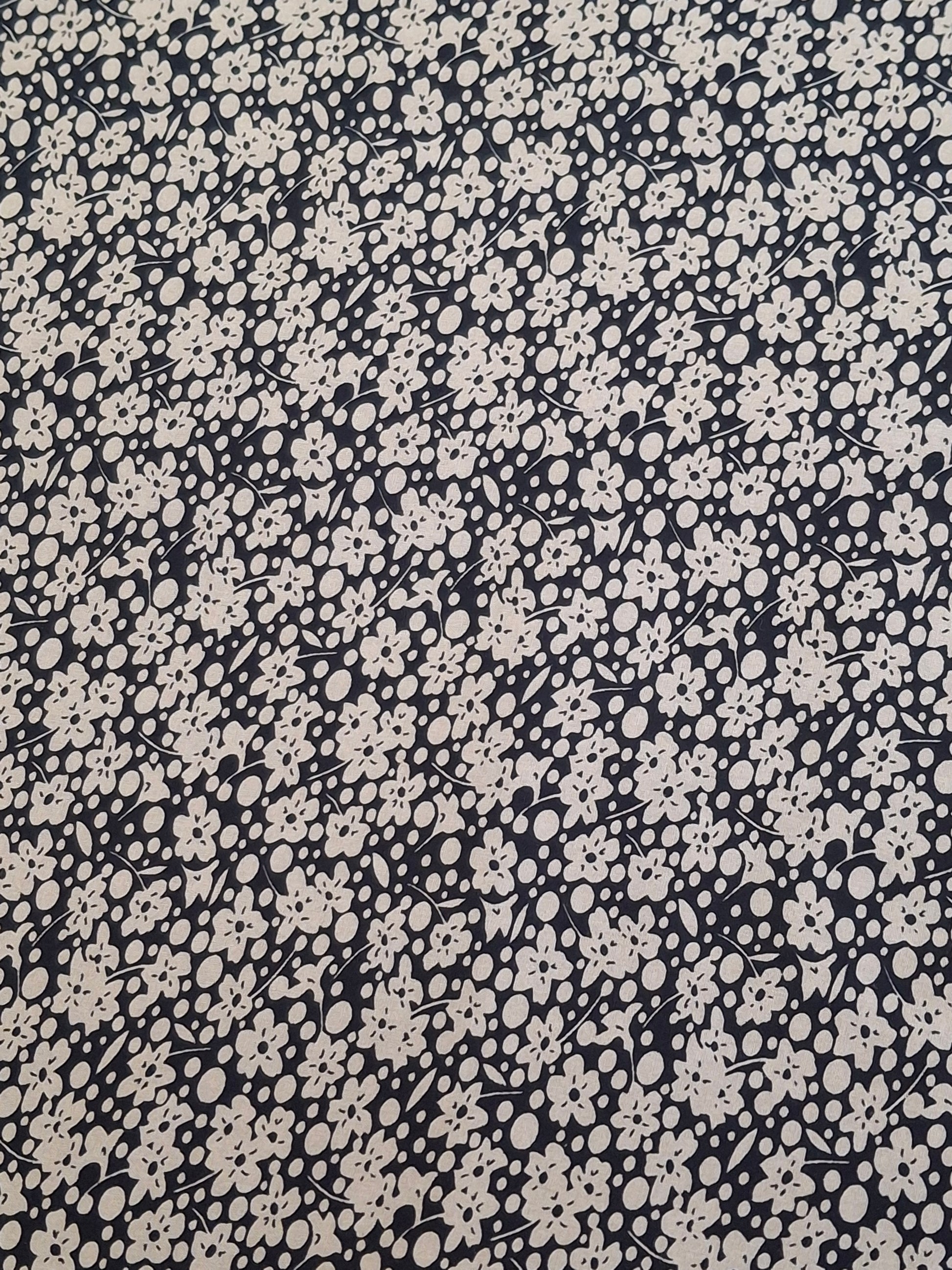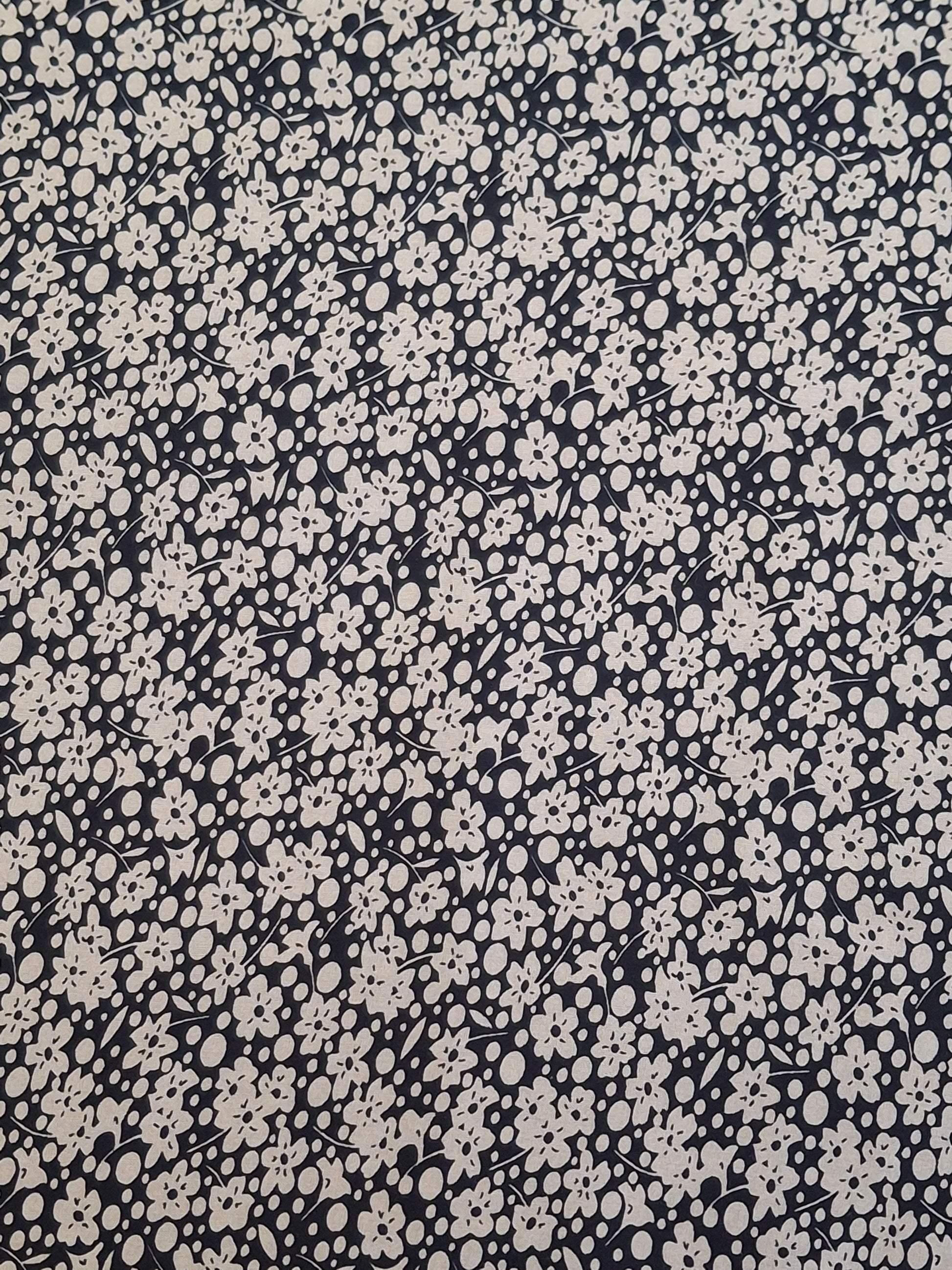 Classic meets charm in our Midnight Petals Viscose. Featuring a timeless black base adorned with a dainty all-over white floral and polka dot print, this fabric brings vintage elegance with a modern twist. The small-scale pattern adds a playful texture that’s perfect for dresses, tops, skirts, and even accessories. Lightweight and soft to the touch, this viscose offers a beautiful drape ideal for everyday wear or standout pieces.