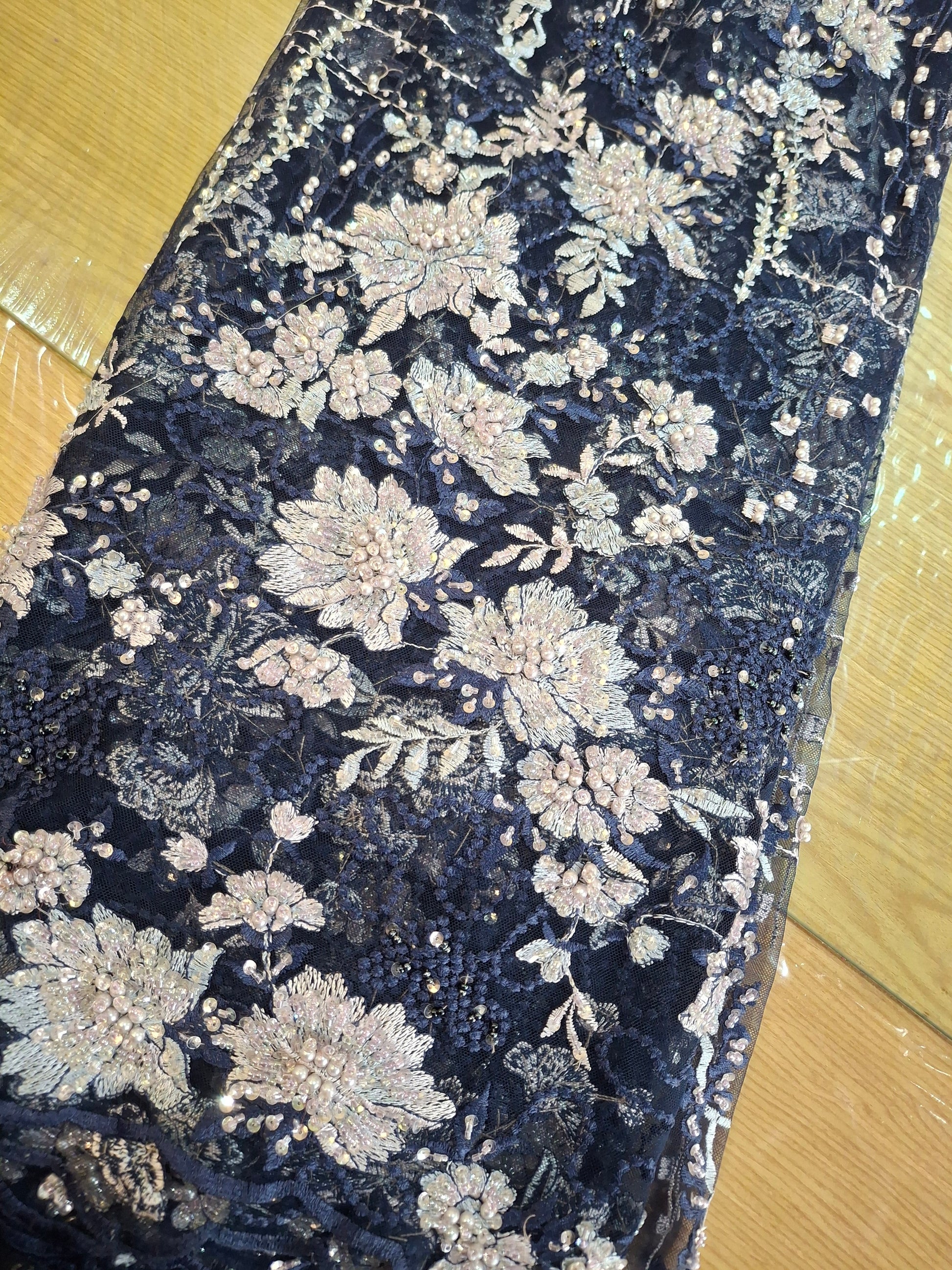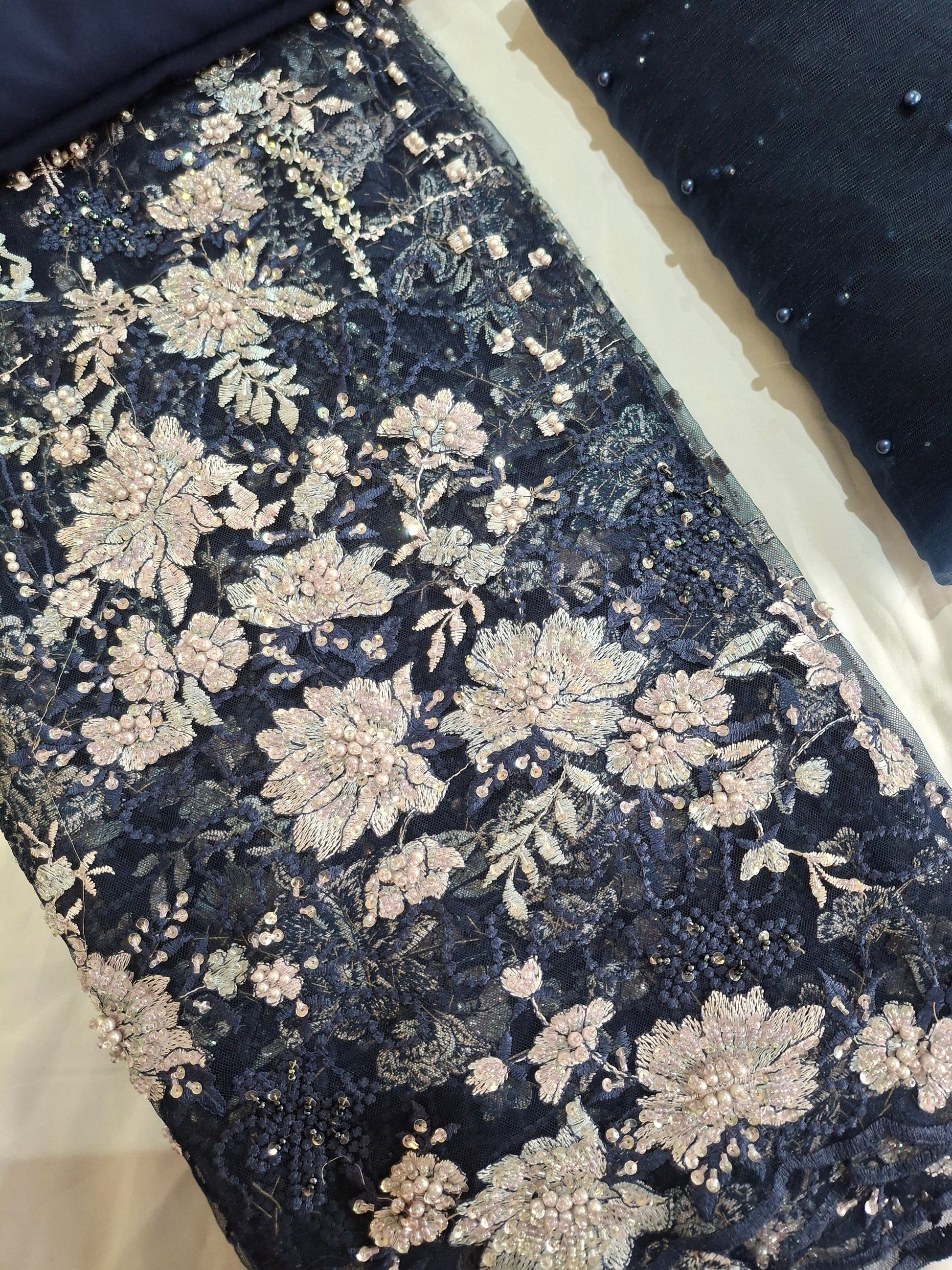 Dupatta: 2.30 meters pearl net dupatta, exquisitely embroidered to complement the ensemble.