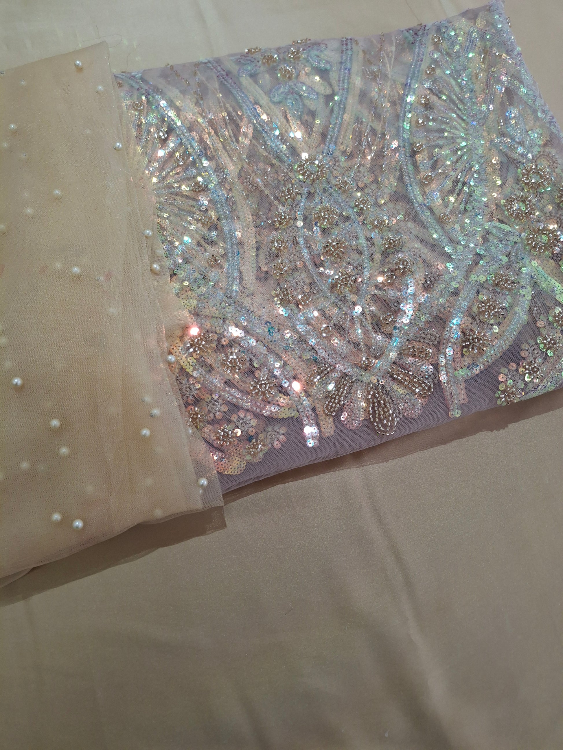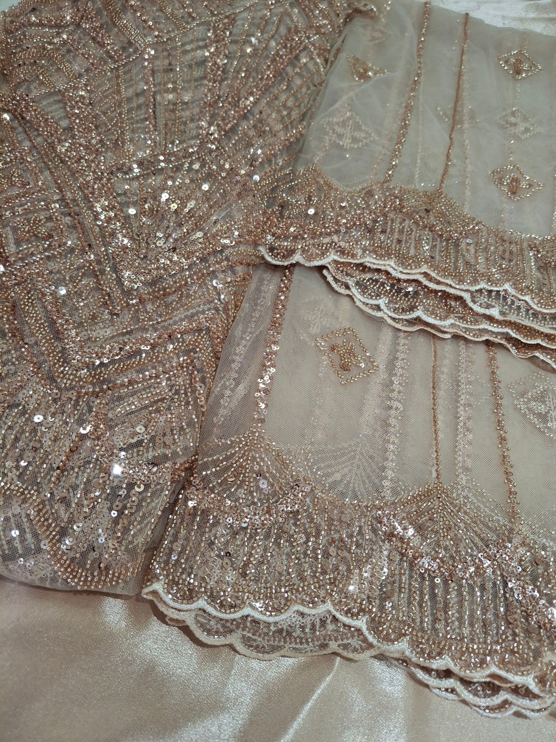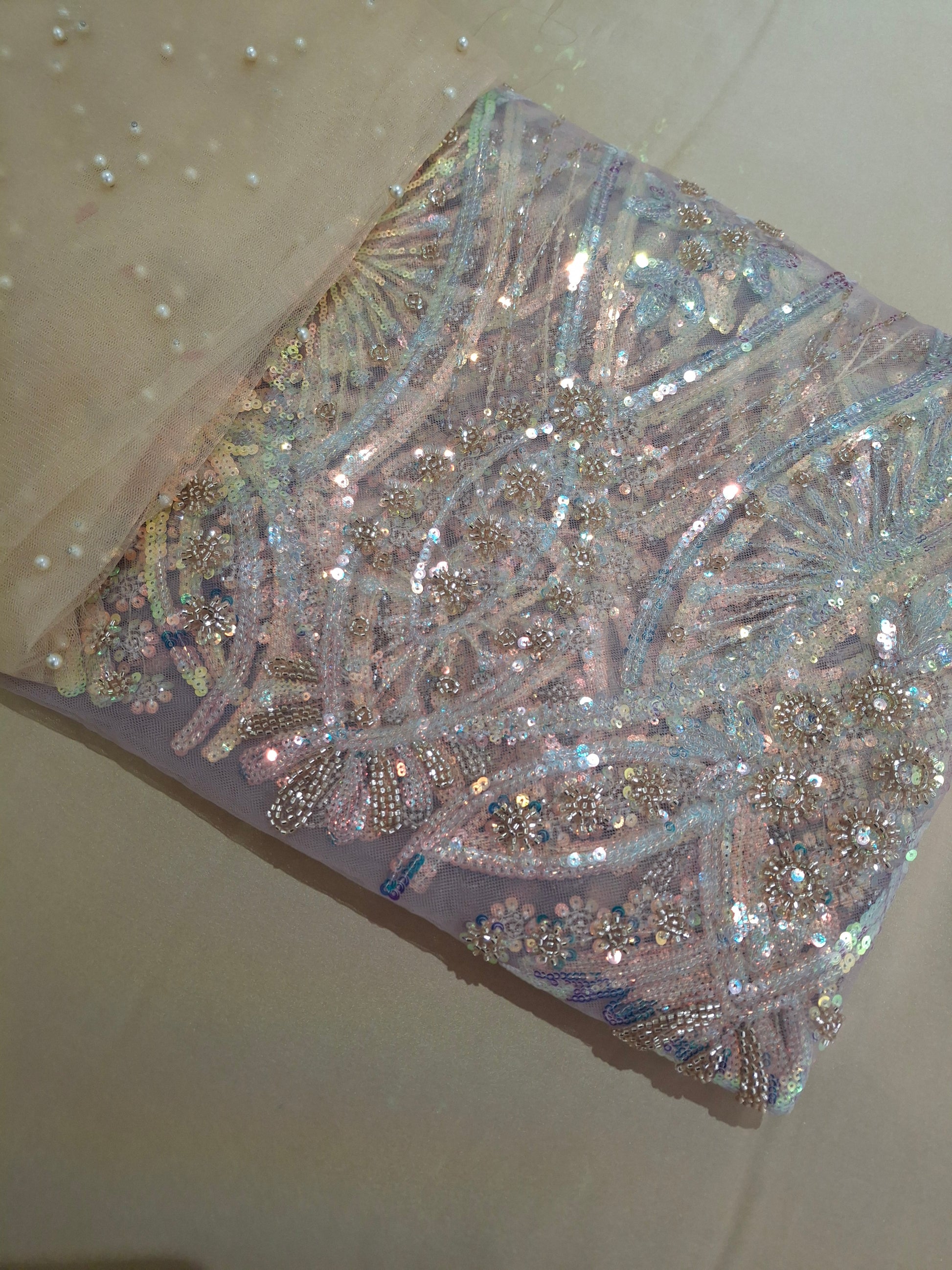 Fabric Type: Soft net/tulle base with heavy hand embroidery and beadwork.