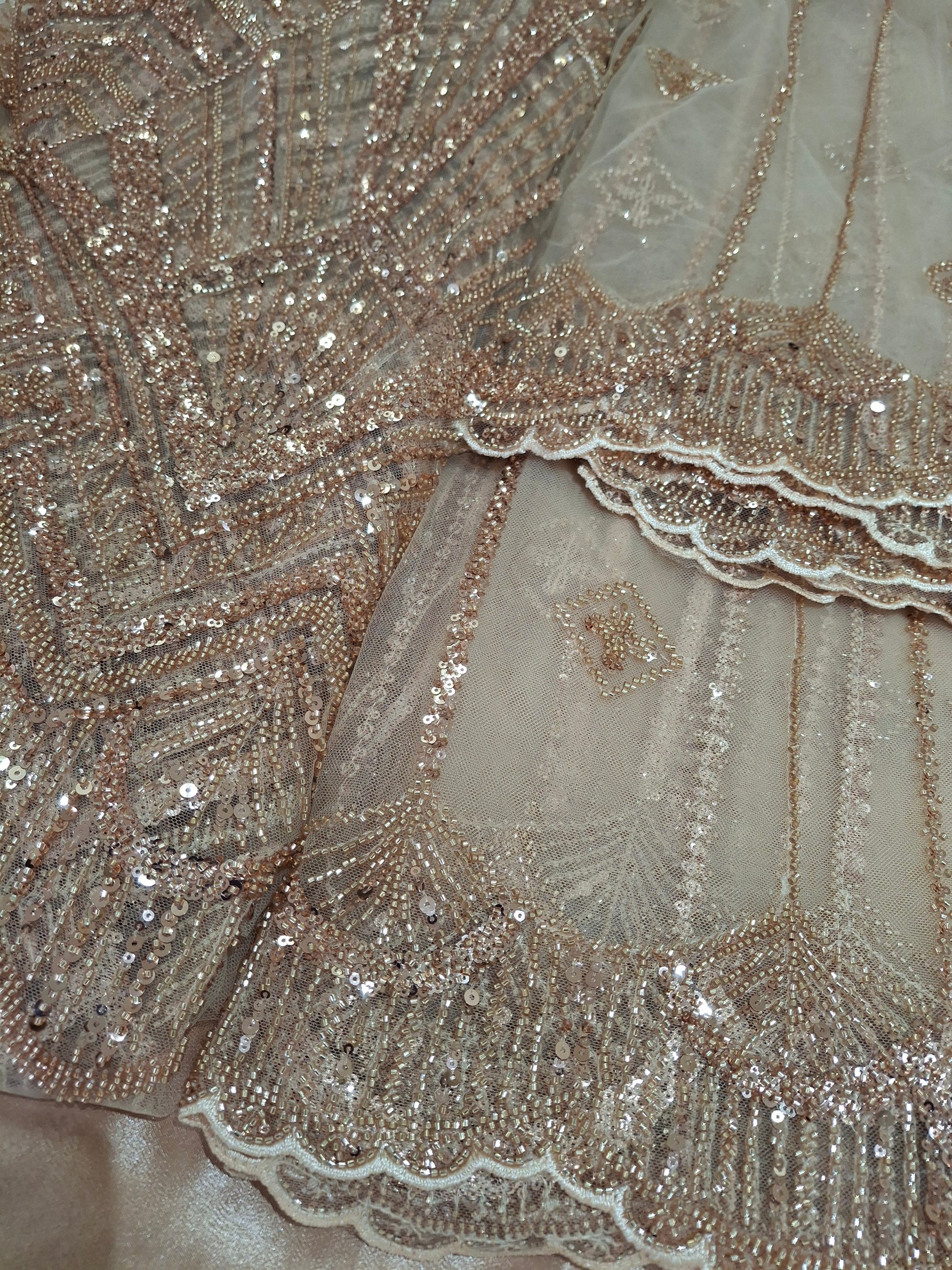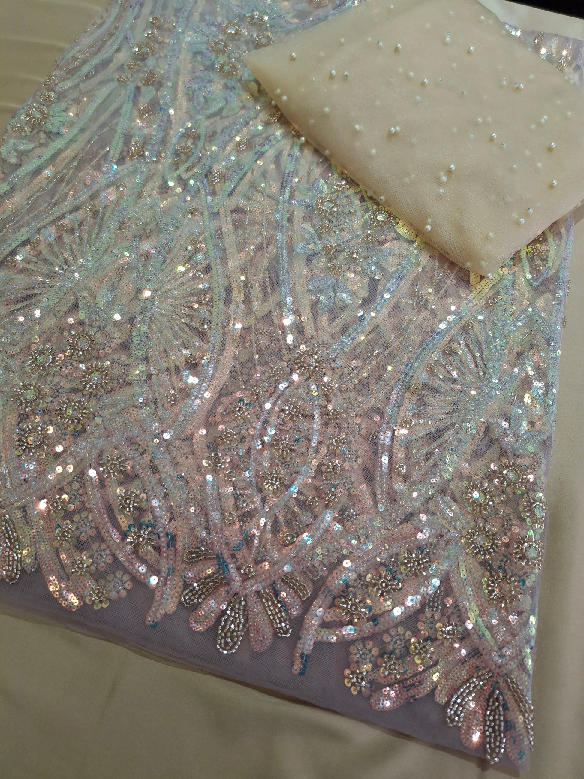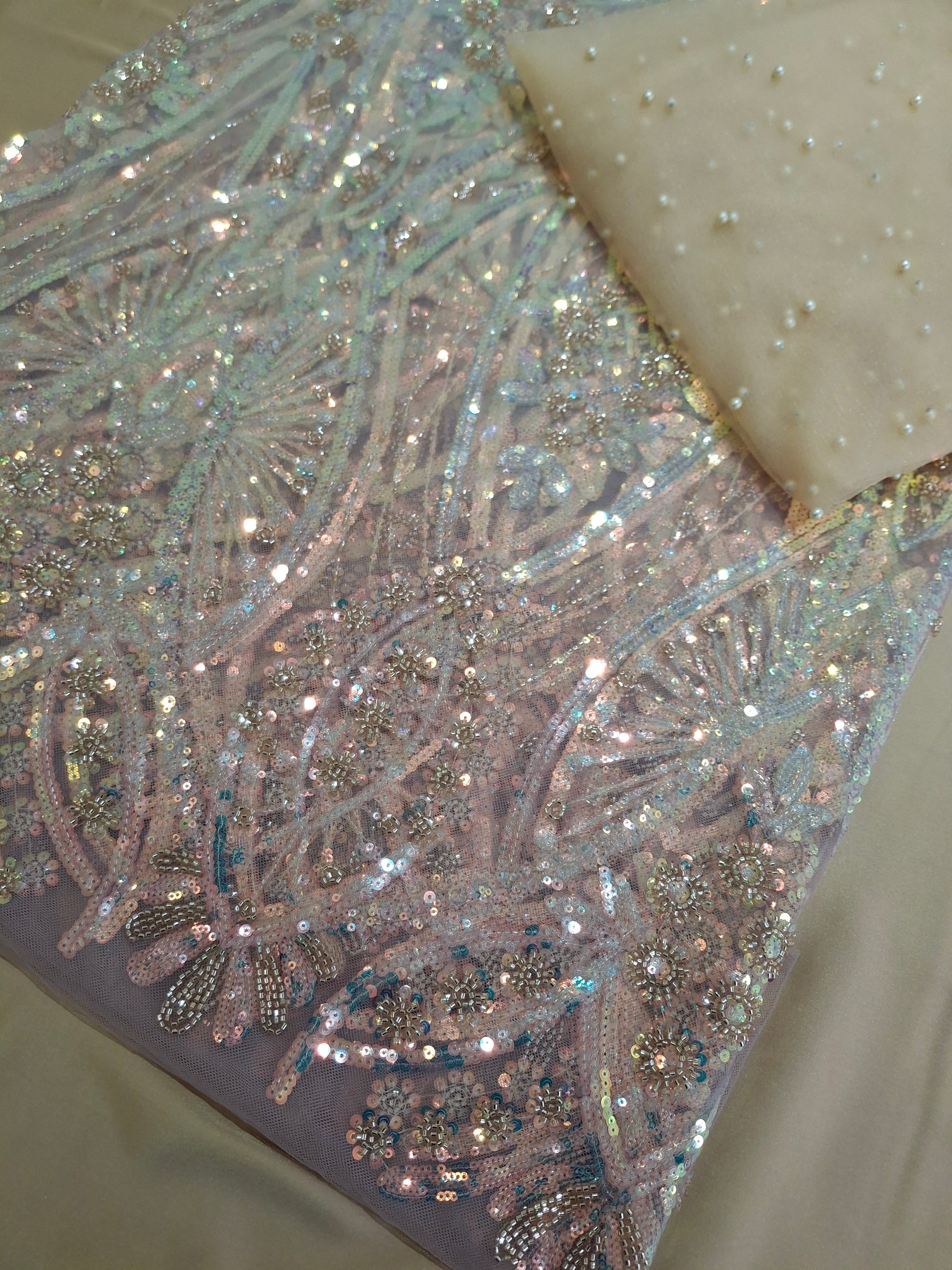 Fabric Type: Soft net/tulle base with heavy hand embroidery and beadwork.