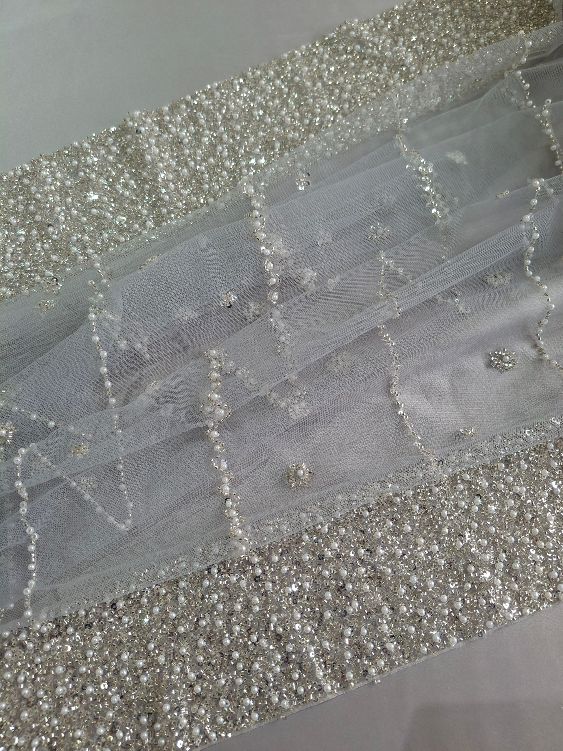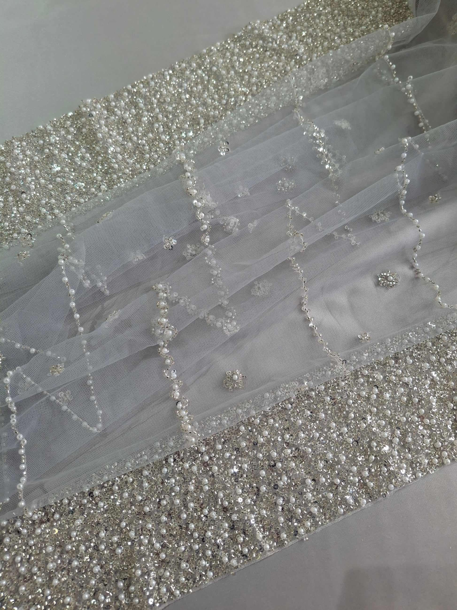 Dupatta: 2.30 meters navy pearl net dupatta, exquisitely embroidered to complement the ensemble.