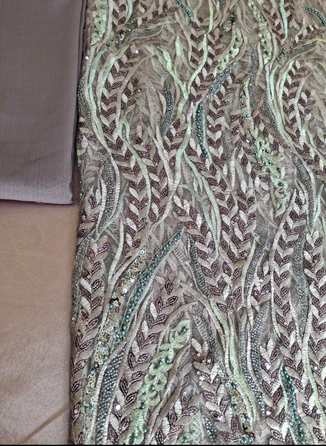 Dupatta: 2.30 meters pearl net dupatta, exquisitely embroidered to complement the ensemble.