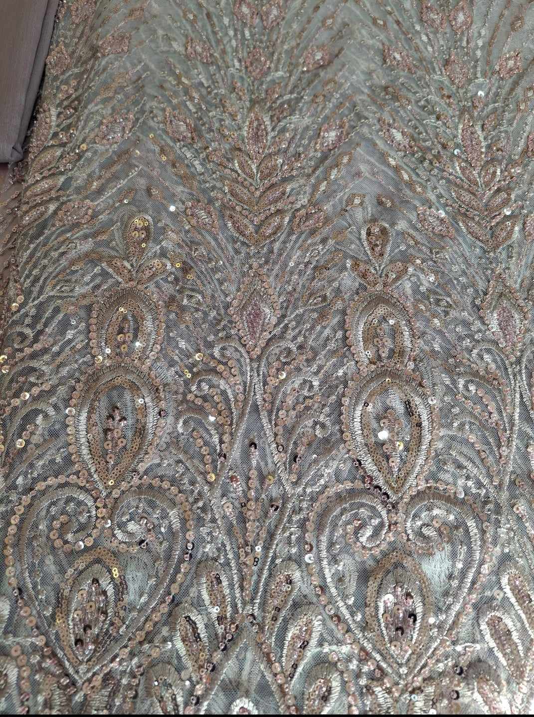 Qameez: 2 meters net fabric, embroidered with delicate patterns in shimmering sequins for a graceful look.