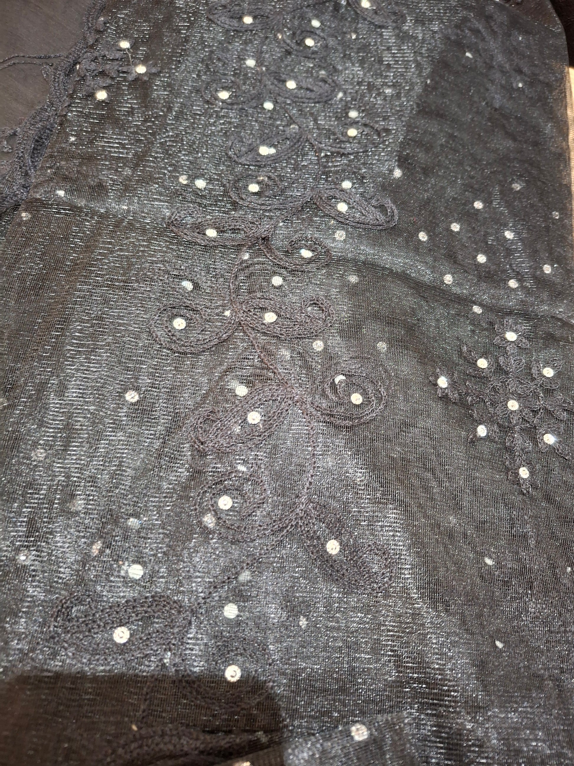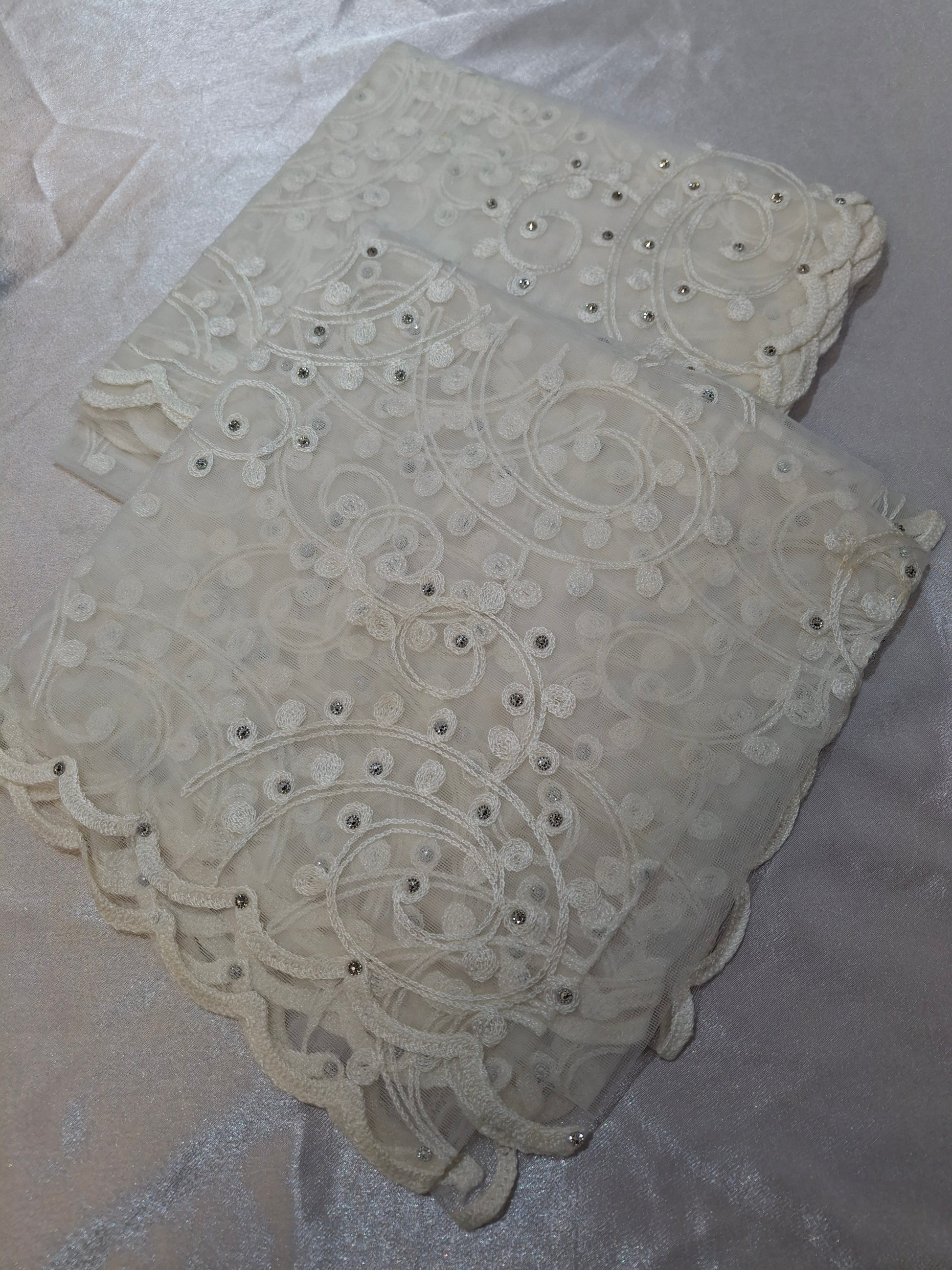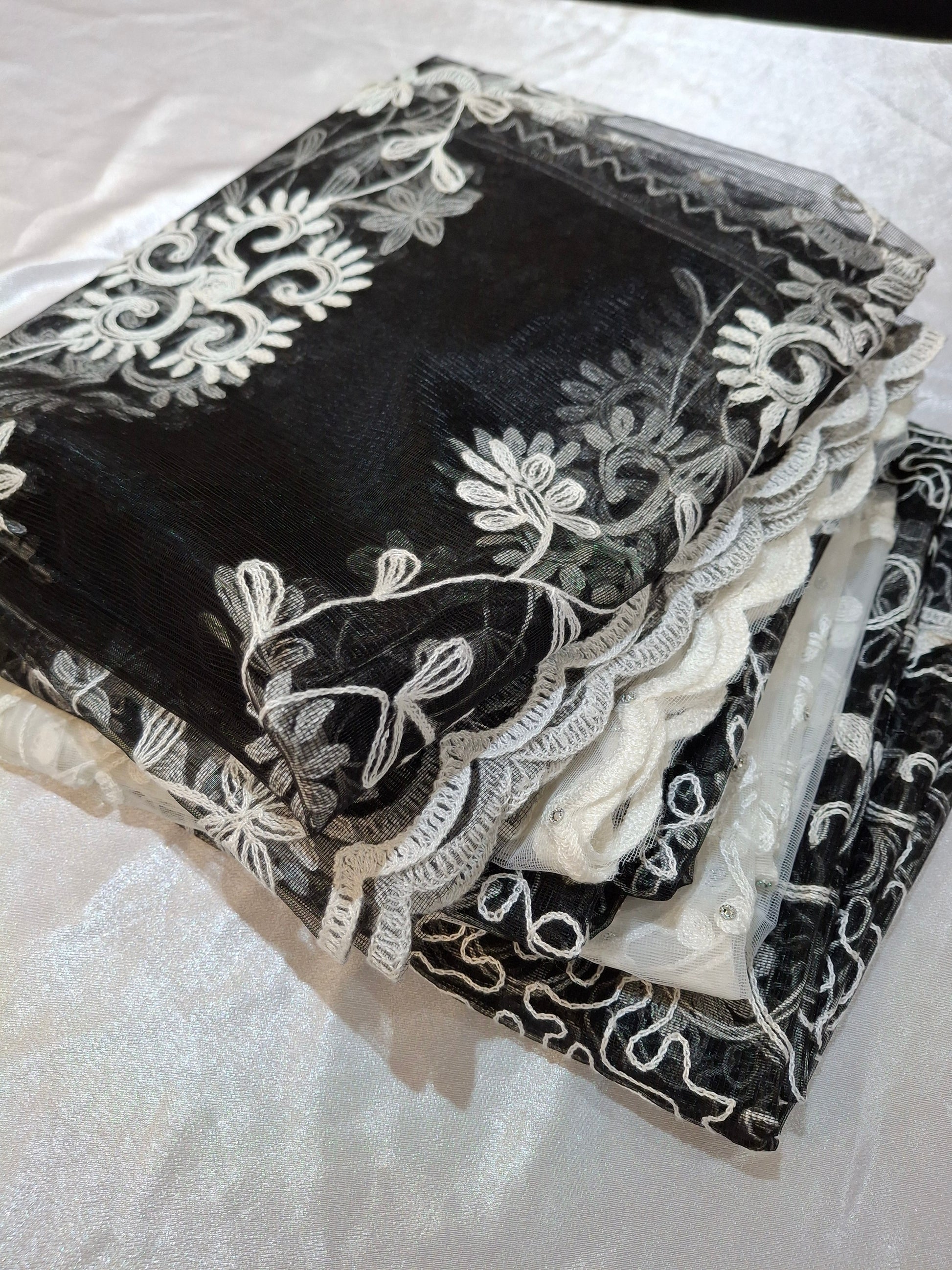 Lightweight Plain Net and Embroidered Dupatta(2.30 meters length)