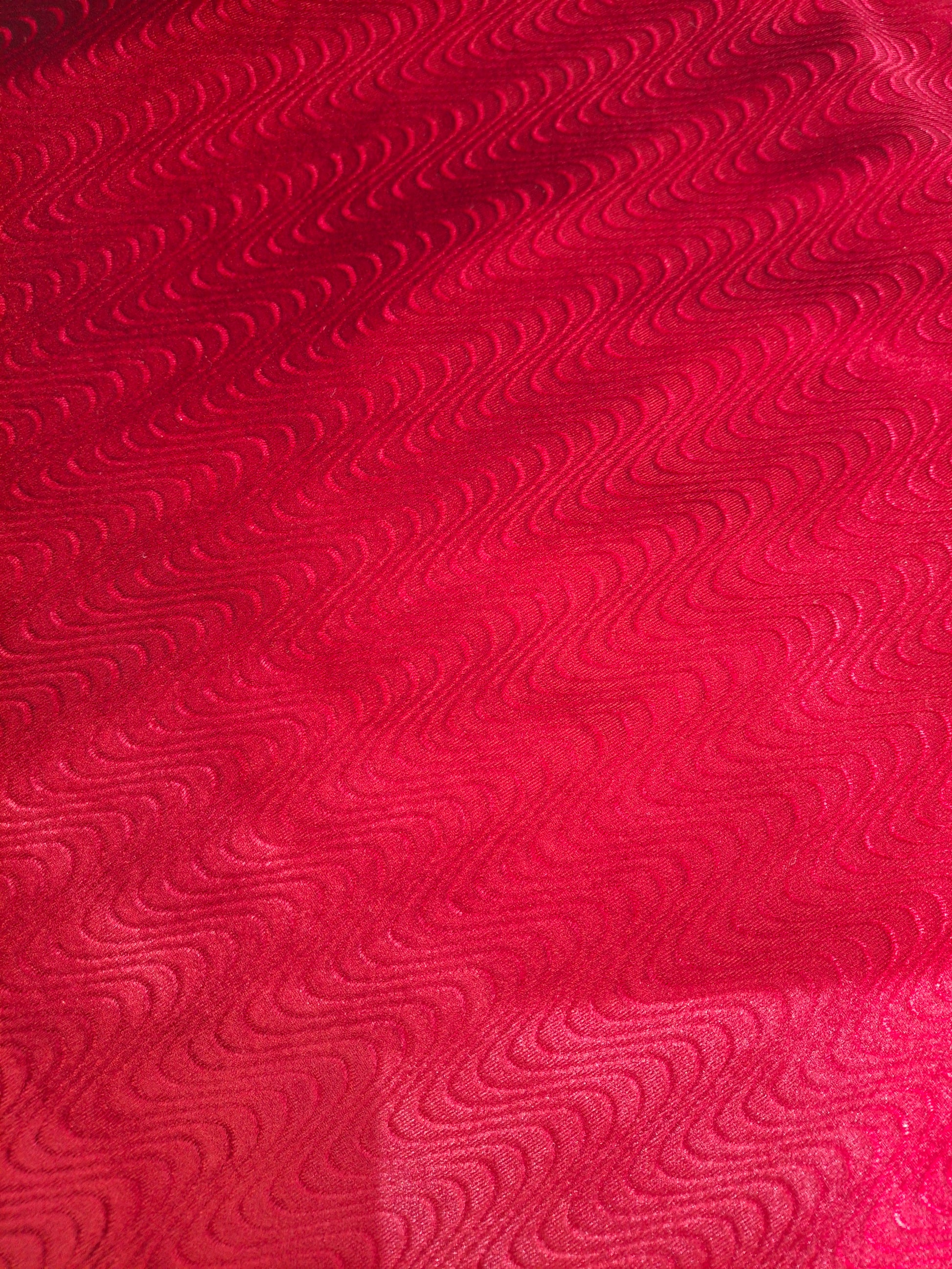 This luxurious red velvet fabric comes in a width of 60 inches, making it perfect for creating elegant and stylish ethnic or western wear. The fabric features a subtle embossed wave-like pattern, giving it a rich texture and premium look. Sold as a 4-meter unstitched suit set.